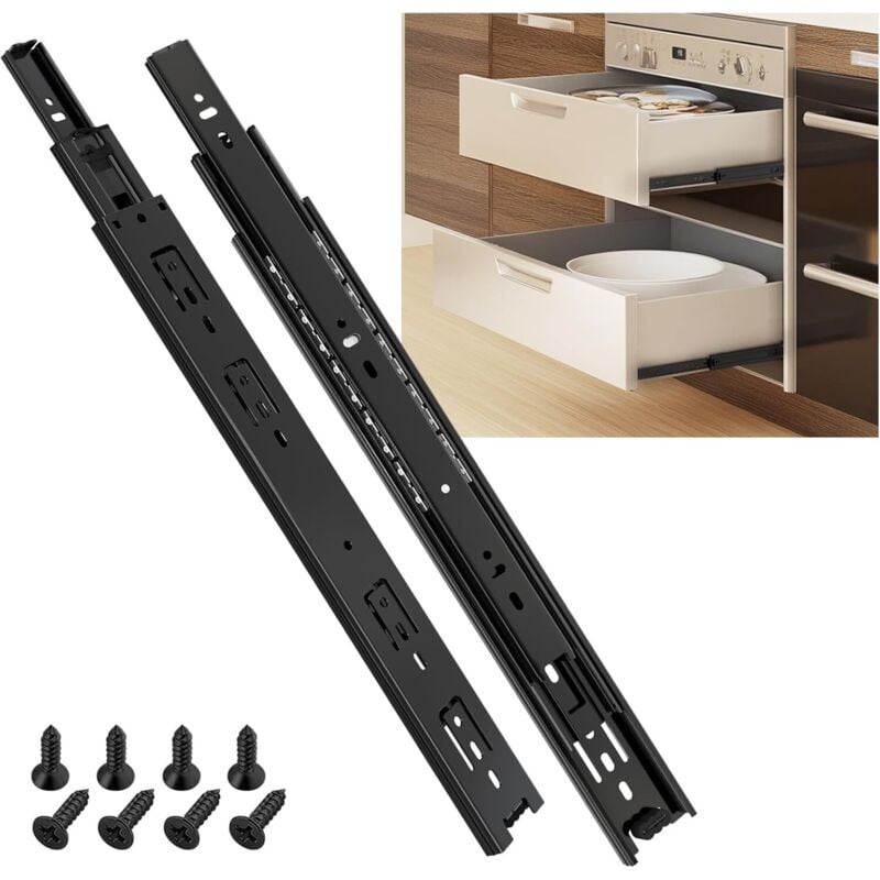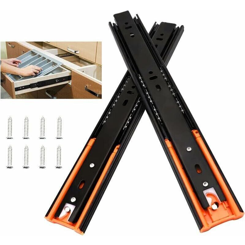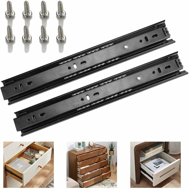 100/150/200/250/300/350/400/450/500/550/600 mm Coulisse Tiroir avec Amortisseur, Rail Tiroir Coulissant, Coulisse Tiroir Sortie Totale pour la Plupart des Tiroirs ( Color : Negro , Size : 45cm/17.7in