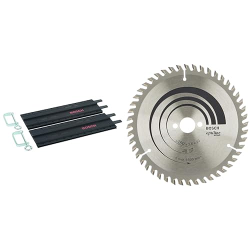 Bosch 2x Rails de Guidage en Plastique avec Pinces-Étaux (2x 350 mm, Accessoires & Bosch Professional 1x lame de scie circulaire Optiline Wood (bois, diamètre de la lame de scie 121,3 x 18,9 x 1,1 cm