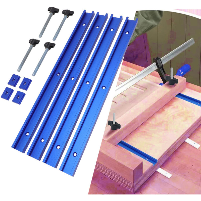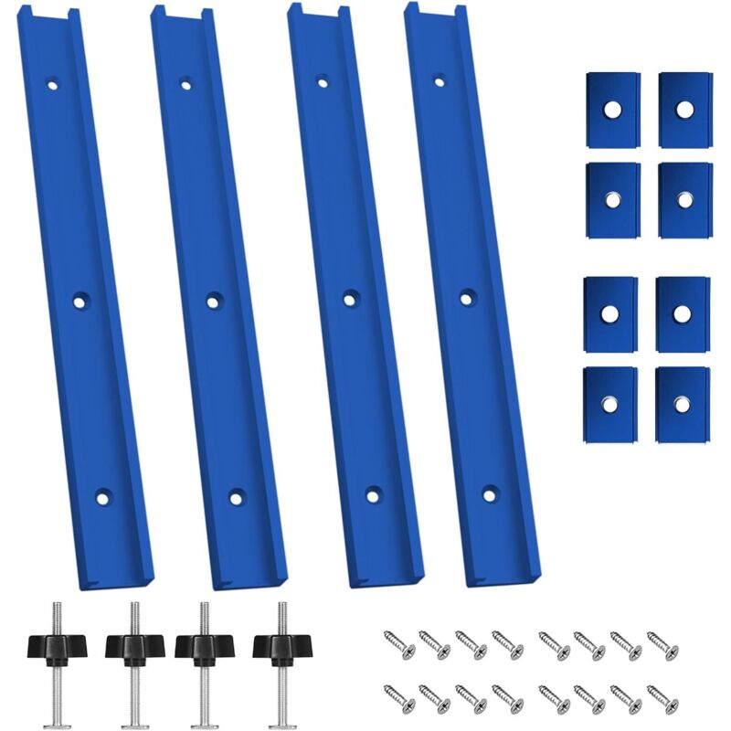 Lot de 4 Rail de Guidage Scie Sur Table, Rails Aluminium T Track de 400mm,Rail en T Avec Accessoires Complets pour Outil de Travail du Bois,blue