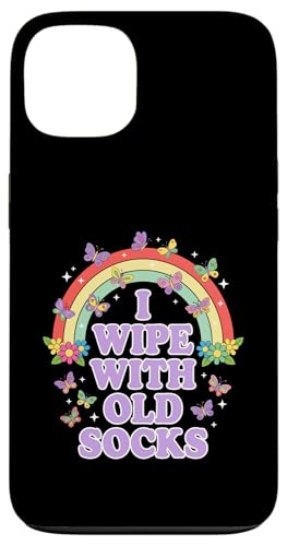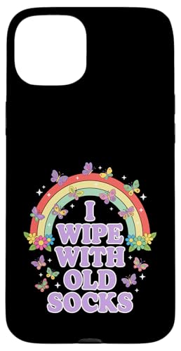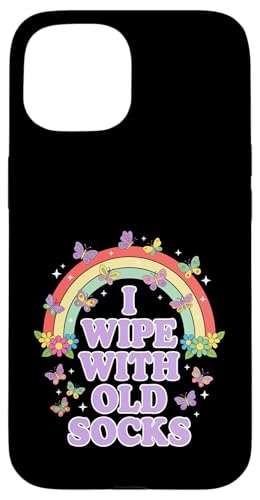 I Wipe with Old Socks Funny Adult Humour Rainbow Coque pour iPhone 15