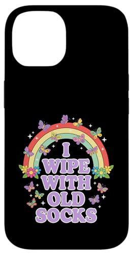 I Wipe with Old Socks Funny Adult Humour Rainbow Coque pour iPhone 14