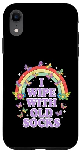 I Wipe with Old Socks Funny Adult Humour Rainbow Coque pour iPhone XR