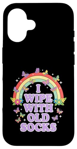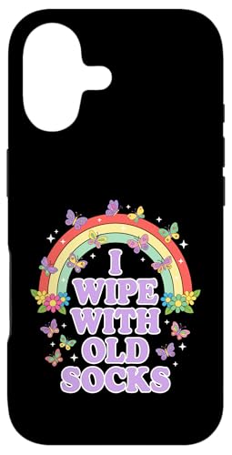 I Wipe with Old Socks Funny Adult Humour Rainbow Coque pour iPhone 16