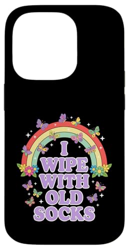 I Wipe with Old Socks Funny Adult Humour Rainbow Coque pour iPhone 14 Pro