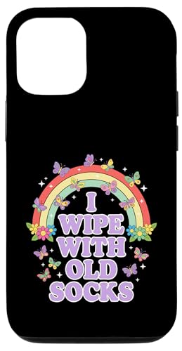 I Wipe with Old Socks Funny Adult Humour Rainbow Coque pour iPhone 12/12 Pro