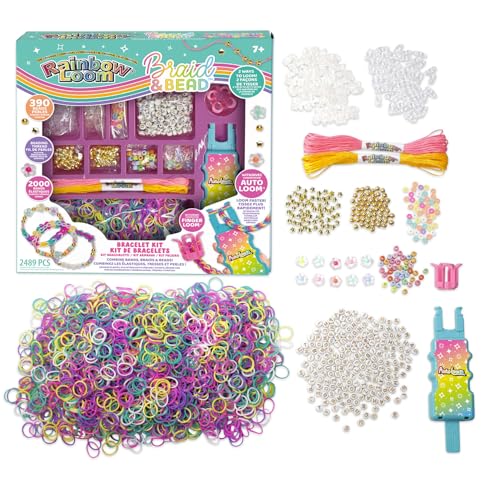 BANDAI - Rainbow Loom Braid & Bead - Coffret Fabrication Bracelets Élastiques, Tresses, Perles - Loisir Créatif - Contient 2000 Élastiques, Auto-Loom et Accessoires - Jouet Enfant 7 Ans et + - CD0183