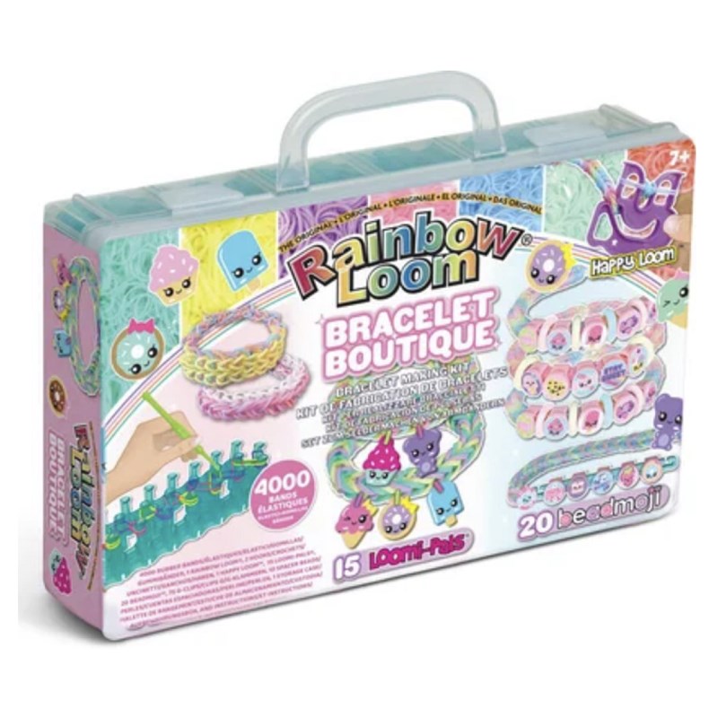 BANDAI - Rainbow Loom Boutique – Coffret Fabrication Automatique de Bracelets Élastiques - Loisir Créatif - Contient 4000 Élastiques, Crochets, Beadmojis, Charms - Jouet Enfant 7 ans et + - CD0186
