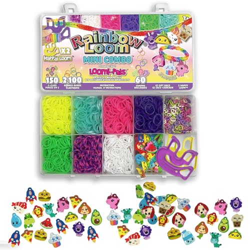 Coffret fabrication de bracelets - BANDAI - Rainbow Loom Mini Combo Set Loomi Pals - 2100 élastiques / 60 charms