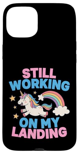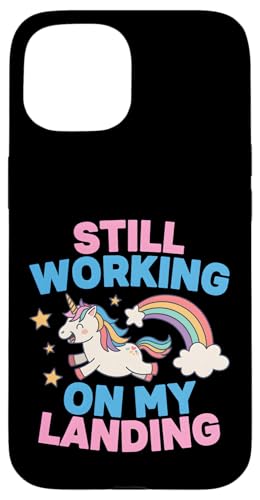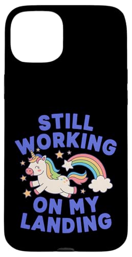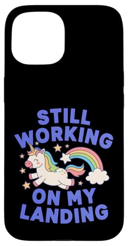 Je Travaille Toujours sur My Landing Unicorn Rainbow Funny Coque pour iPhone 15