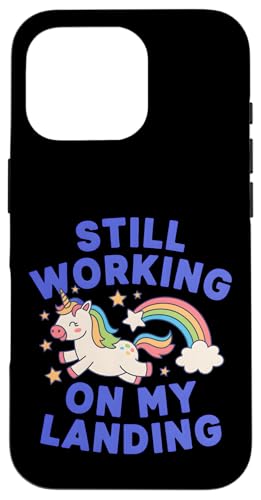 Je Travaille Toujours sur My Landing Unicorn Rainbow Funny Coque pour iPhone 16 Pro