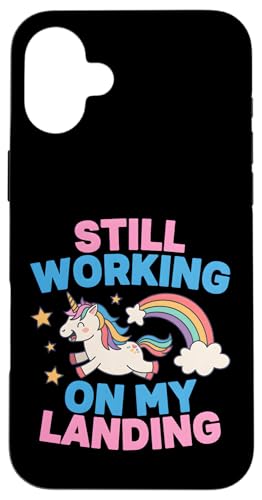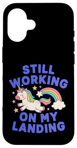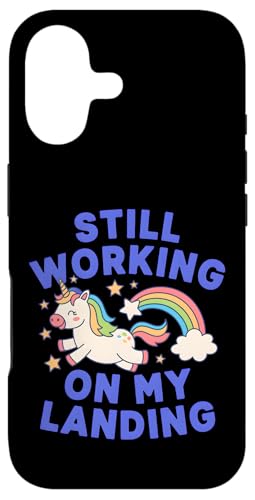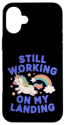 Je Travaille Toujours sur My Landing Unicorn Rainbow Funny Coque pour iPhone 16 Plus