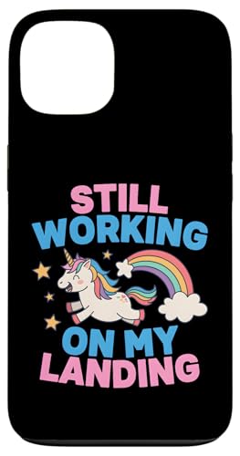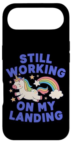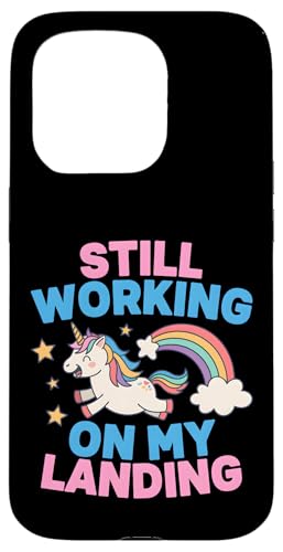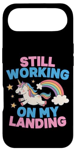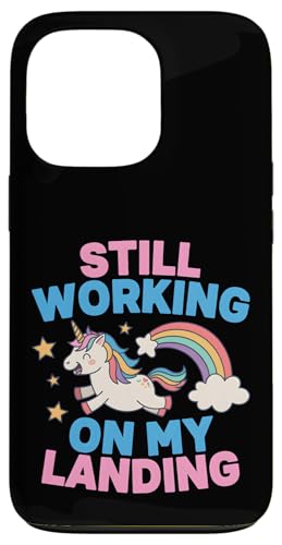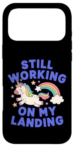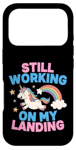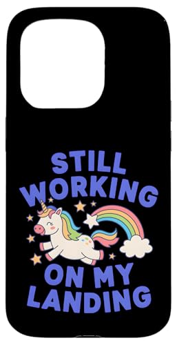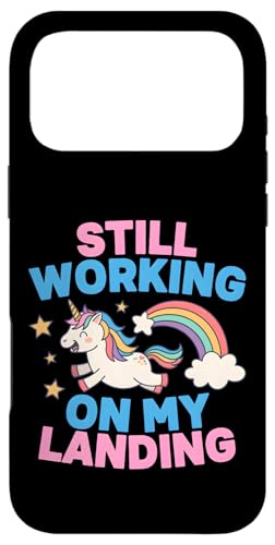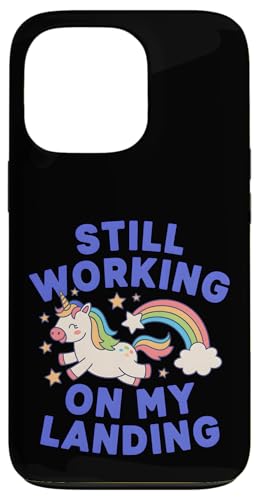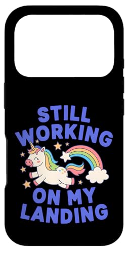 Je Travaille Toujours sur My Landing Unicorn Rainbow Funny Coque pour iPhone 17 Pro
