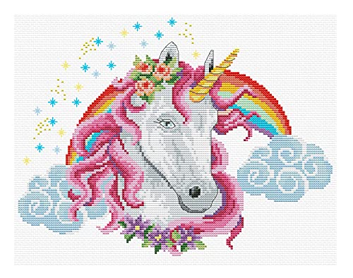 Ladybird set de broderie Rainbow Unicorn, set de point de croix env. 26,6 x 21 cm, set complet pour un tableau de broderie carré, hobby artisanal pour adultes et enfants à partir de 8 ans