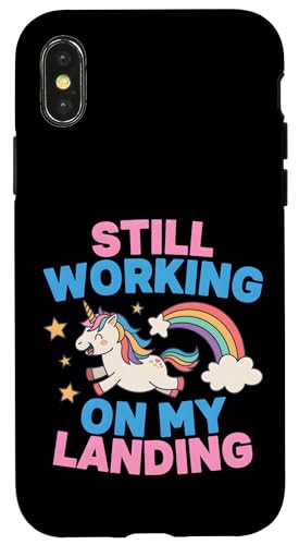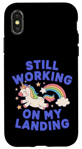 Je Travaille Toujours sur My Landing Unicorn Rainbow Funny Coque pour iPhone X/XS