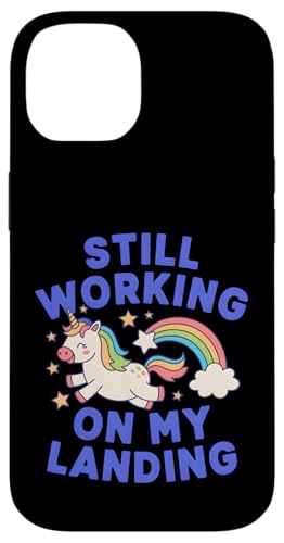 Je Travaille Toujours sur My Landing Unicorn Rainbow Funny Coque pour iPhone 17