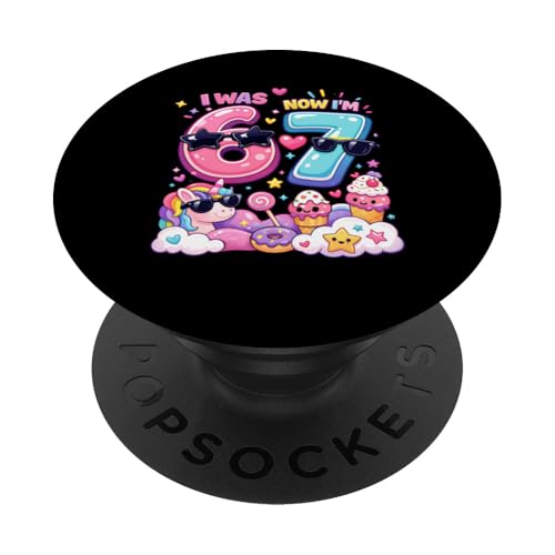Maintenant J'Ai 6 Ans L'année Prochaine j'aurai 7 Ans Rainbow Unicorn 67 Meme Bday PopSockets PopGrip Adhésif