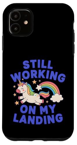 Je Travaille Toujours sur My Landing Unicorn Rainbow Funny Coque pour iPhone 11
