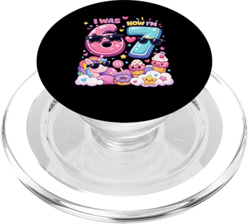 J'avais 6 Ans Maintenant J'Ai 7 Ans Rainbow Unicorn Ice Cream 67 Meme Birthday PopSockets PopGrip pour MagSafe