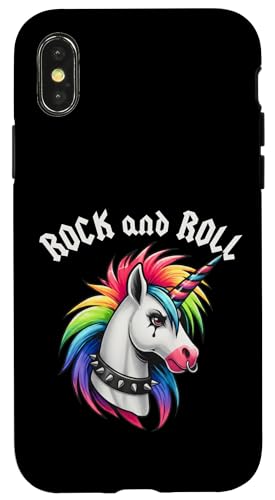 Rock N Roll Rainbow Unicorn Emo Goth Alternative Animal Coque pour iPhone X/XS