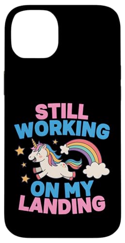 Je Travaille Toujours sur My Landing Unicorn Rainbow Funny Coque pour iPhone 15 Plus