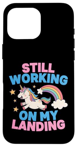 Je Travaille Toujours sur My Landing Unicorn Rainbow Funny Coque pour iPhone 16 Pro Max