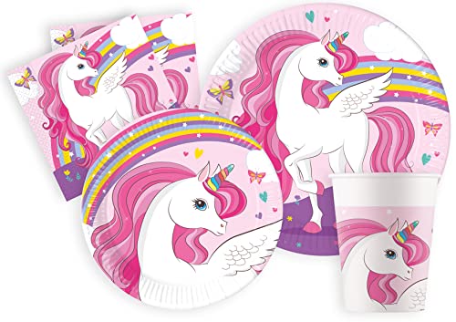 Procos - Set de fête S Unicorn Rainbow 52 pièces, 16 Assiettes, 16 gobelets, 20 Serviettes, Vaisselle jetable, Vaisselle de fête, décoration de Table