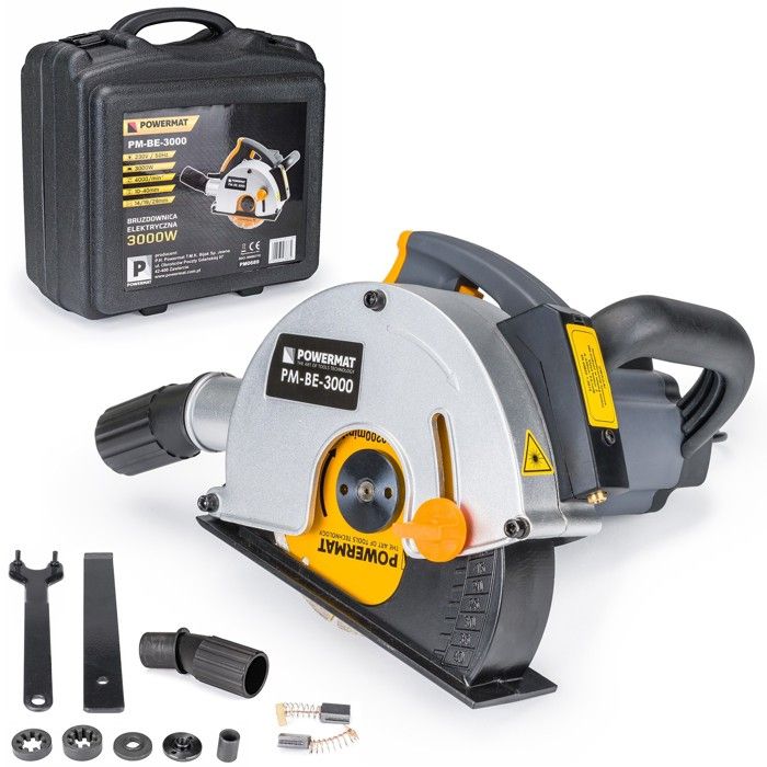 Powermat Mallette rainureuse électrique à béton double disques avec laser 3000W