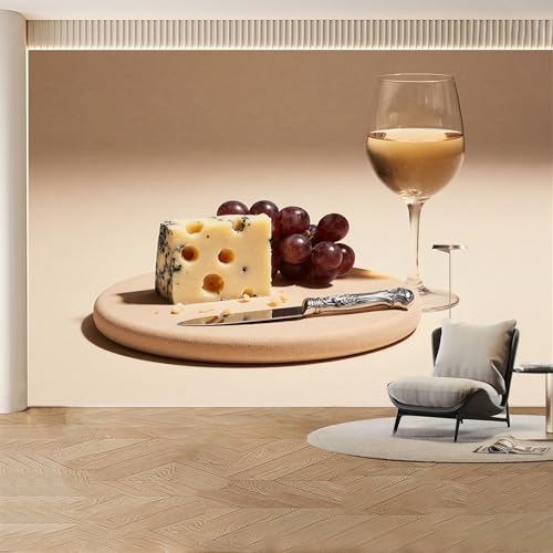 Papier peint mural personnalisé, fromage, raisin, vin assorti, amovible, grande photo pour salon, chambre à coucher, bureau
