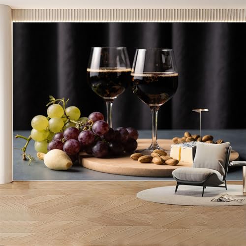 Papier peint mural personnalisé, motif vin rouge, raisin, fromage, noix, amovible, grande photo pour salon, chambre, bureau