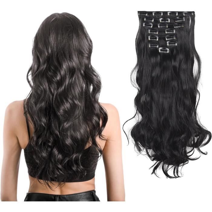 Extension de Cheveux à Clips Naturel Noir Lisse Extension Cheveux Naturel Clip Vrai Cheveux Extension Rajout Cheveux Clip Extension