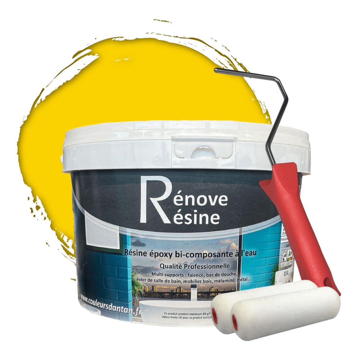 Peinture Résine multisupport Intérieur pour Faïence, Carrelage, Douche, Baignoire 5m² - RAL 1023 Jaune signalisation + Kit d'application OFFERT
