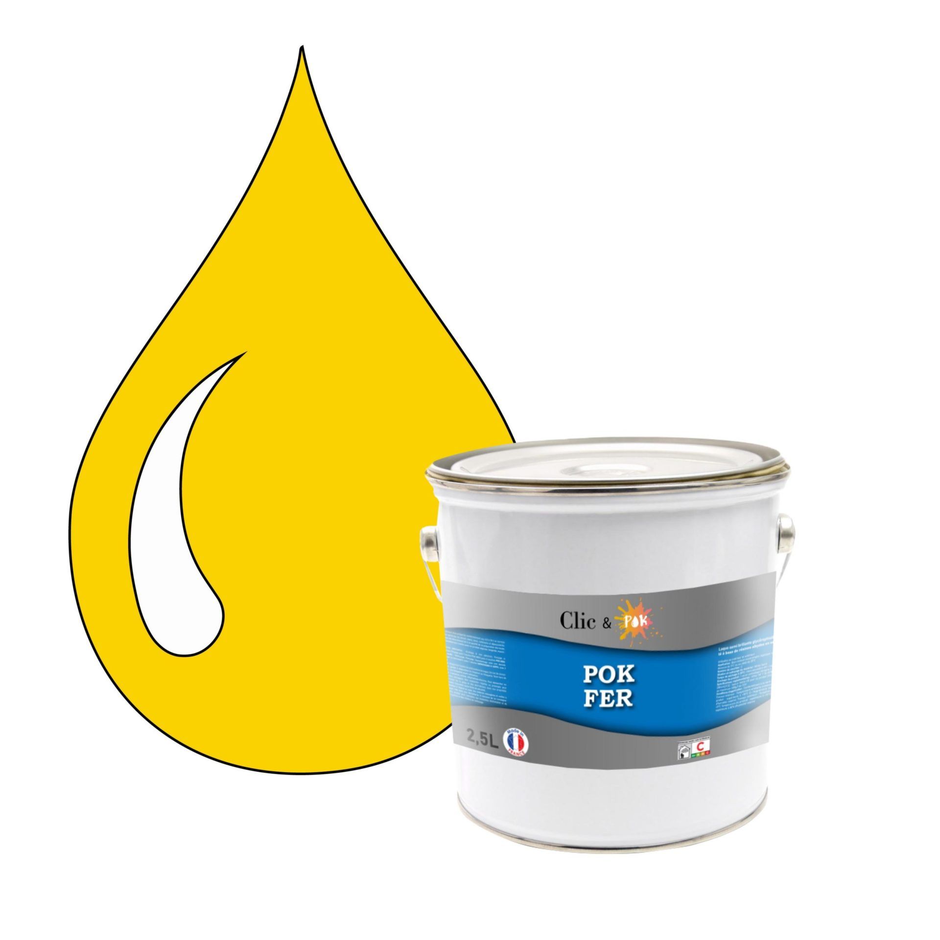 POK FER Jaune : Peinture de Finition Antirouille Laque Semi-Brillante Métaux Ferreux - 2,5L - RAL 1023 - Jaune Signalisation