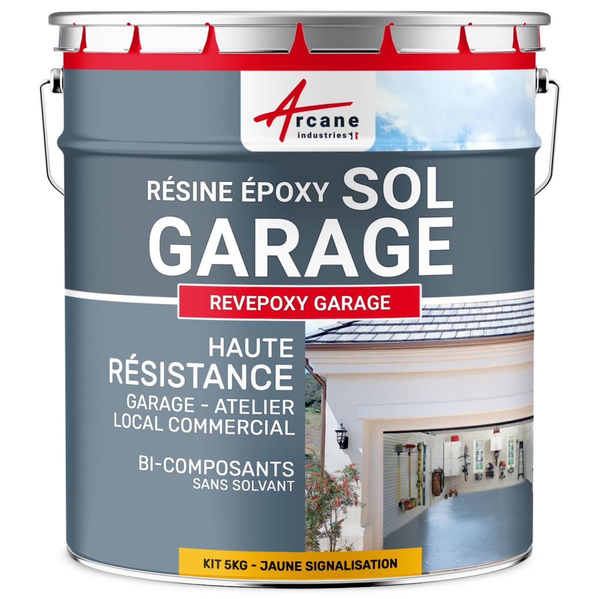 Peinture epoxy, garage, sol, atelier, local, commercial, magasin : Revepoxy garage Jaune Signalisation - RAL 1023 5 kg (jusqu'à 16 m² en 2 couches)