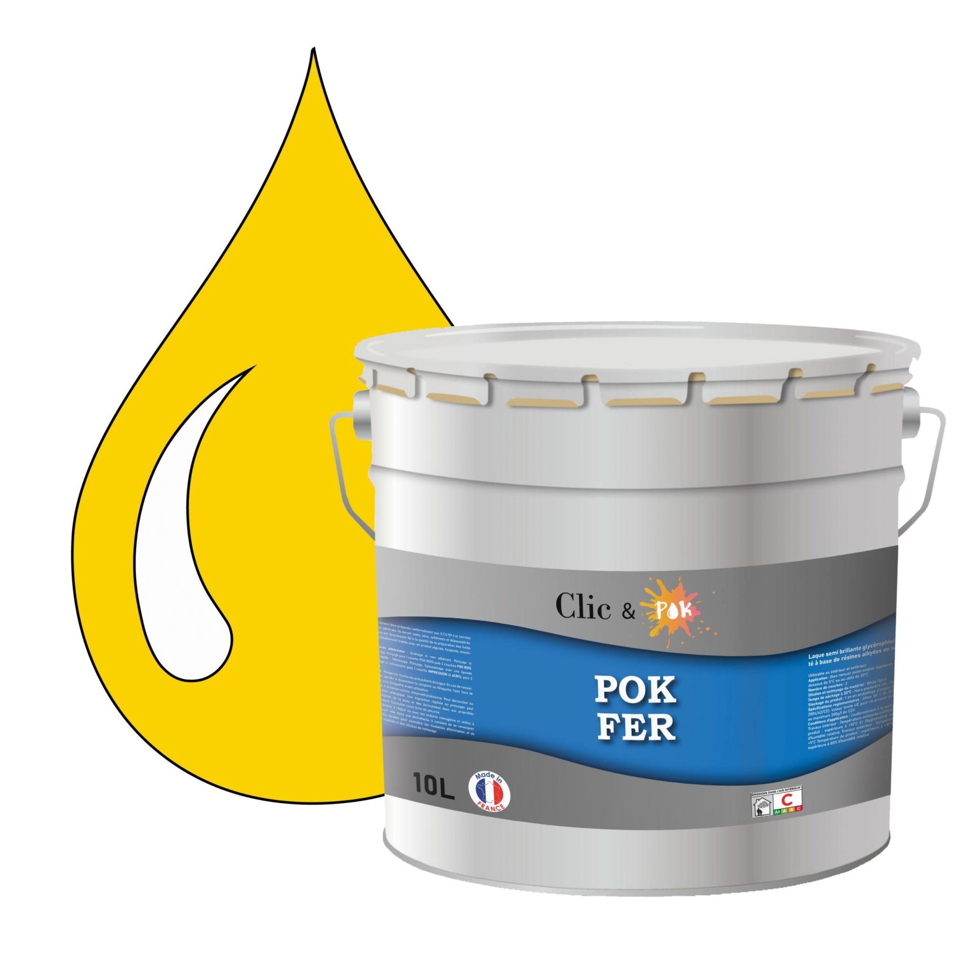 POK FER Jaune : Peinture de Finition Antirouille Laque Semi-Brillante Métaux Ferreux - 10L - RAL 1023 - Jaune Signalisation