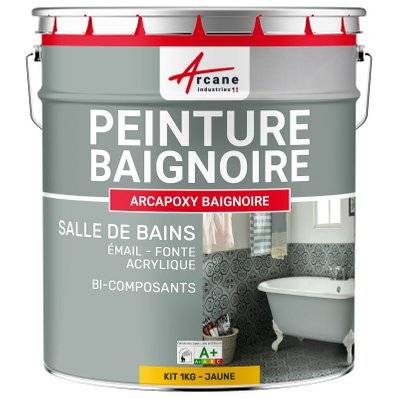 Peinture baignoire et lavabo - Résine de rénovation pour émail, acrylique et fonte - ARCANE INDUSTRIES RAL 1023 Jaune Kit 1 Kg jusqu'a 3m² pour 2 couches