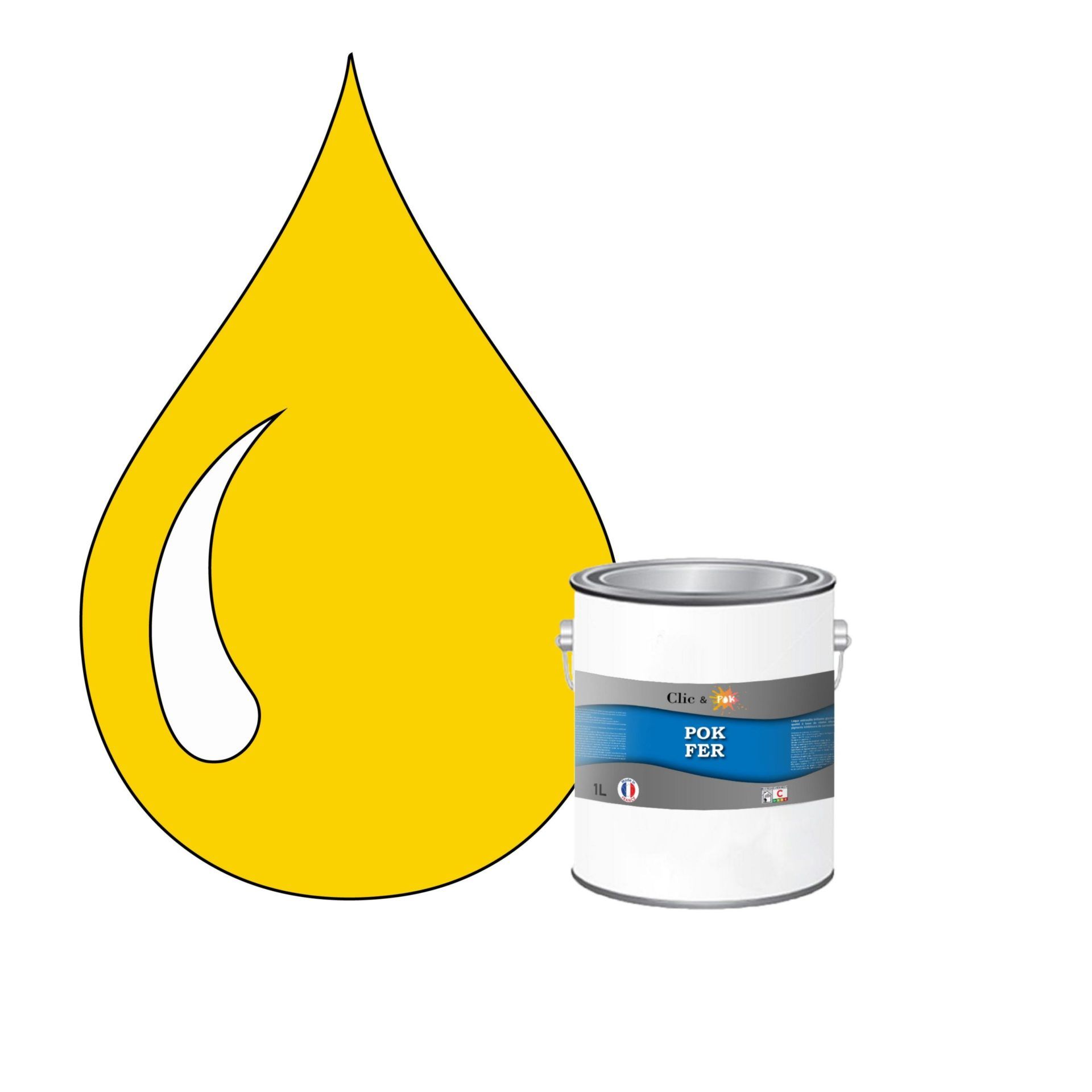 POK FER Jaune : Peinture de Finition Antirouille Laque Semi-Brillante Métaux Ferreux - 1L - RAL 1023 - Jaune Signalisation