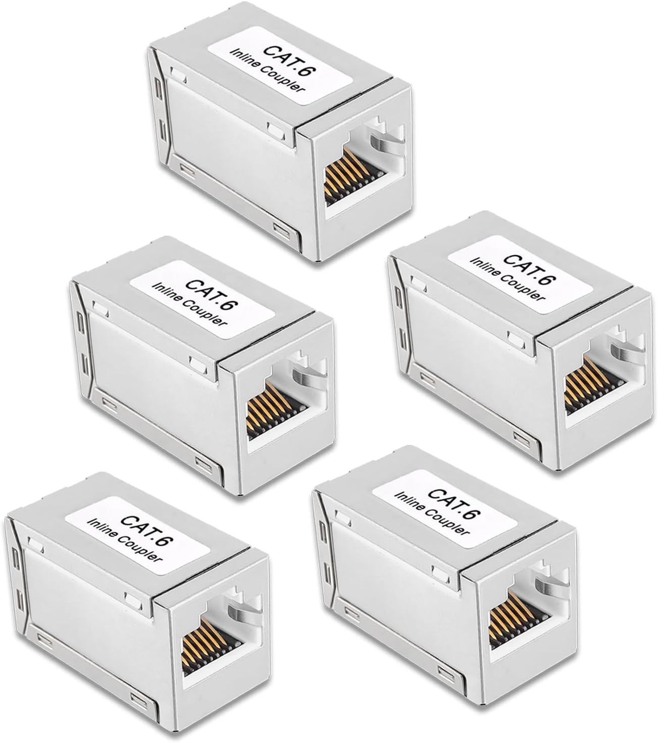 Coupleur RJ45 Cat6 Lot de 5 Adaptateur Ethernet Réseau à Femelle Blindé pour Rallonge Câble Ethernet CAT6 CAT5 CAT5E, Switch / TV / PS4 / ADSL / Modem / TV Box / Router / PC