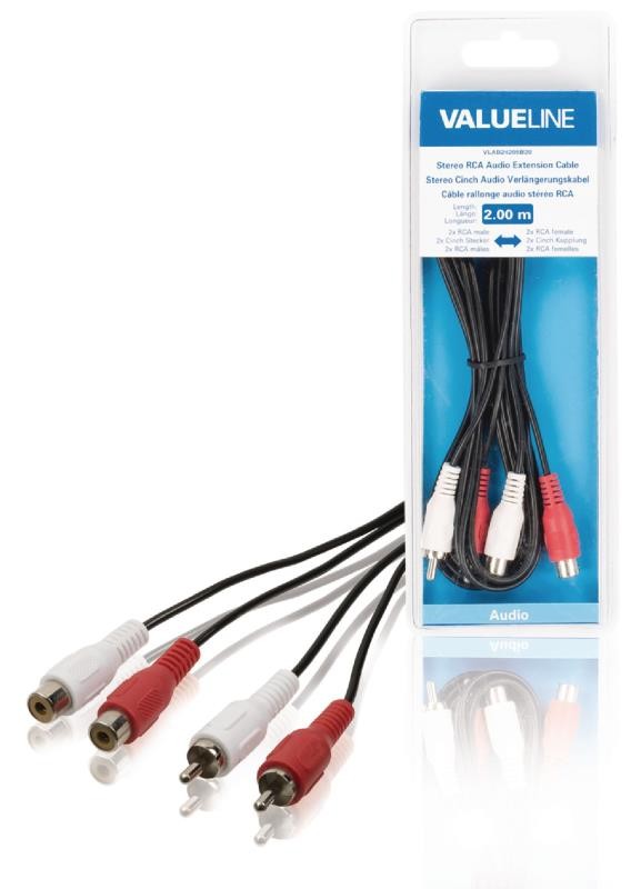 Câble rallonge audio stéréo 2x rca mâles vers 2x rca femelles 2,00 m noir