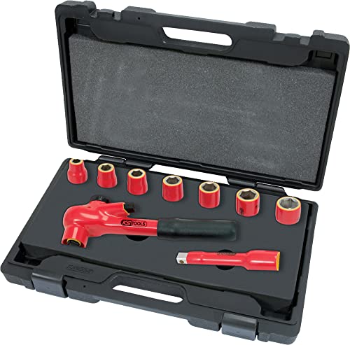 KS Tools 117.0600 - Coffret de douilles isolées 1000V 1/2" - Avec Cliquet et Rallonge - Isolation en immersion - 9 pièces