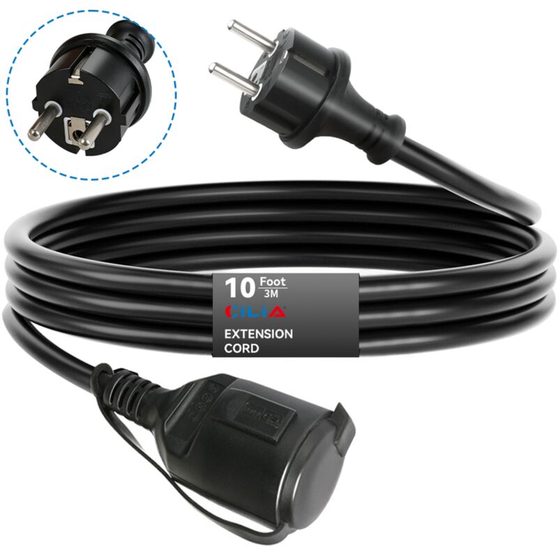 CILIA Rallonge Électrique 3M avec Clapet de Protection, Câble Extension Schuko 16A 3680W, Fiche Coudée 90°, Prise avec Cache pour Jardin, Tondeuse et