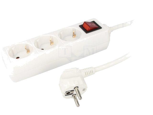 Multiprise blanche avec rallonge 1.4m - parafoudre - 3 prises 230VAC 10A et interrupteur - ADNAuto