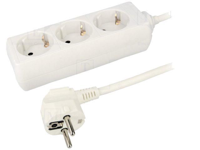 Multiprise blanche avec rallonge 1.4m - parafoudre - 3 prises 230VAC 16A - ADNAuto