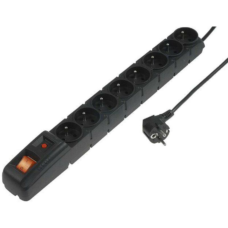 Multiprise noire avec rallonge 3m - parafoudre - 8 prises 230VAC 10A