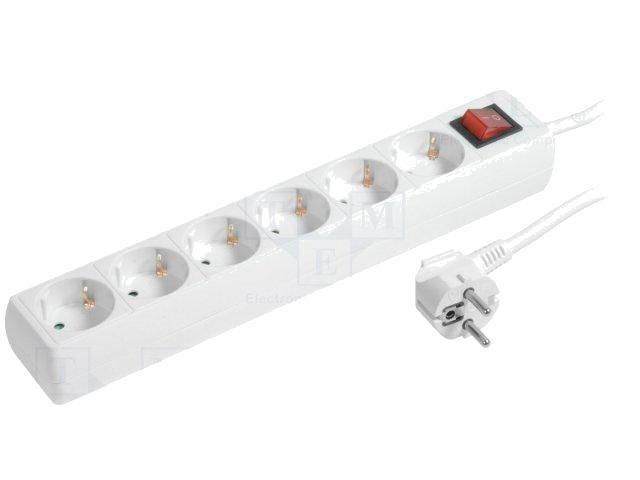 Multiprise blanche avec rallonge 1.5m - parafoudre - 6 prises 230VAC 16A