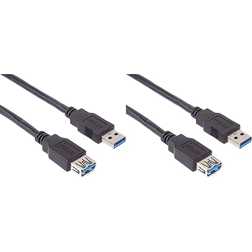 PremiumCord Rallonge USB 3.0, Câble de Données SuperSpeed Jusqu'à 5 Gbit/S, Câble de Charge, USB 3.0 Type A Femelle vers Mâle, 9 Broches, 3 Blindages, Couleur Noir, Longueur (Lot de 2)