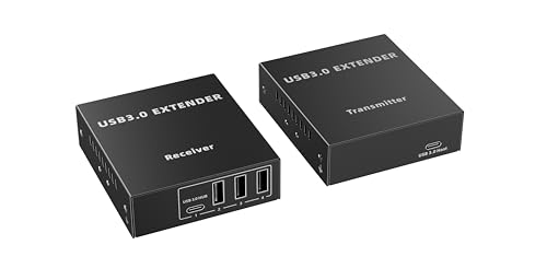 PremiumCord Rallonge USB 3.0 4 Ports sur Cat5E/Cat6/Cat6A Jusqu'À 100 m, 5 Gbit/s, RJ45, Ethernet, Boîtier Métallique, Noir