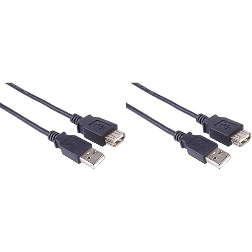 PremiumCord Rallonge USB 3.0, Câble de Données SuperSpeed Jusqu'à 5 Gbit/S, Câble de Charge, USB 3.0 Type A Femelle vers Mâle, 9 Broches, 3 Blindages, Couleur Noir, Longueur (Lot de 2)