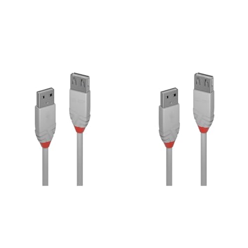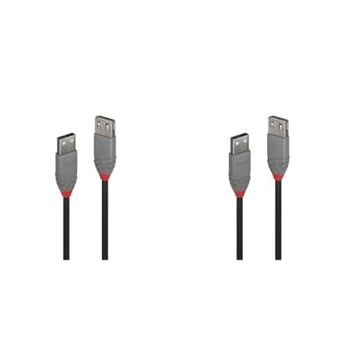 Premium Cord Rallonge USB 2.0, Câble de Données Jusqu'à 480 Mbit/S, Câble de Charge, USB 2.0 Type A Femelle vers Mâle, 4 Broches, 2 Blindages, Couleur Noir, Longueur 5 m (Lot de 2)