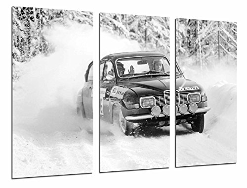 Tableau Moderne Photographique, Impression sur bois, Car Racing Vintage Rally dans le paysage enneigé, 97 x 62 cm, ref. 26888