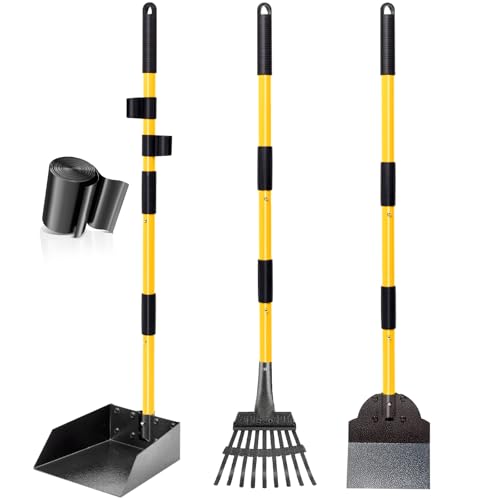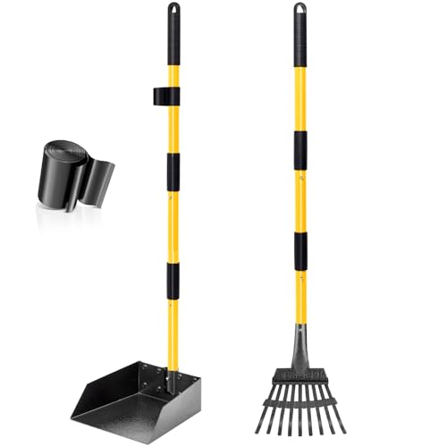 Focket Ramasse-crottes pour Chien, Plateau métallique réglable à Long Manche et râteau, Accessoires pour Animaux de Compagnie, pour l'herbe, la Terre ou Le Gravier